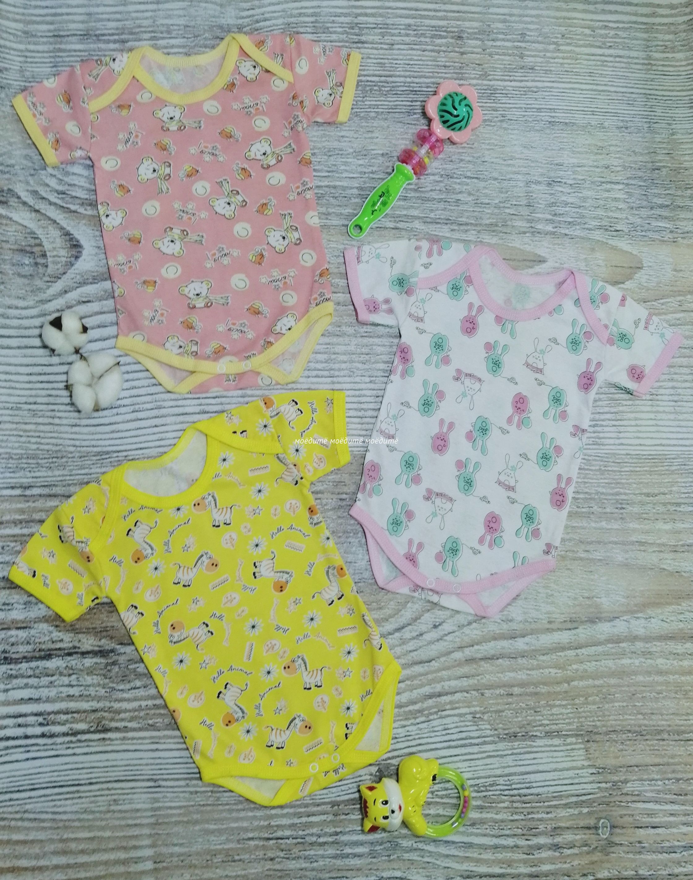 Боди с коротким рукавом, с кнопочками между ножек, на плечиках с запАхом "бабочка".